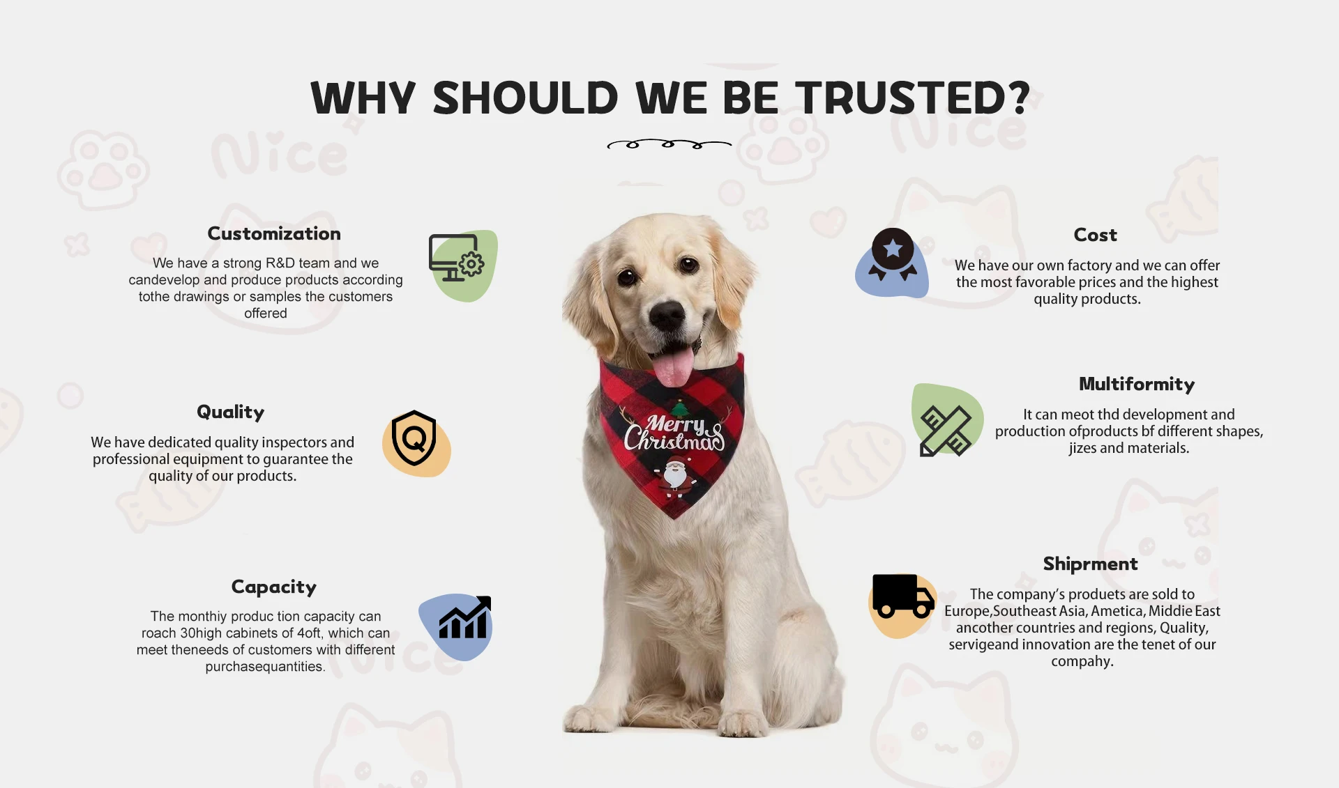 Belangrijkste producten:Riem voor huisdieren, kragen voor huisdieren, riemen voor huisdieren, kleding voor huisdieren